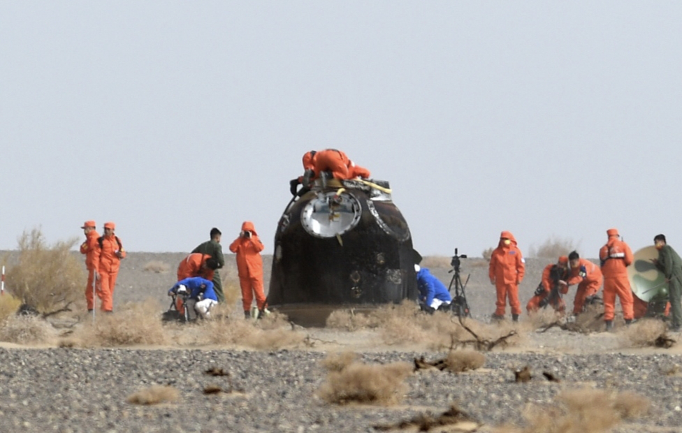 4月16日,神舟十三号载人飞船返回舱在东风着陆场成功着陆。
